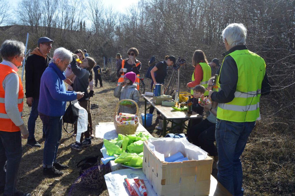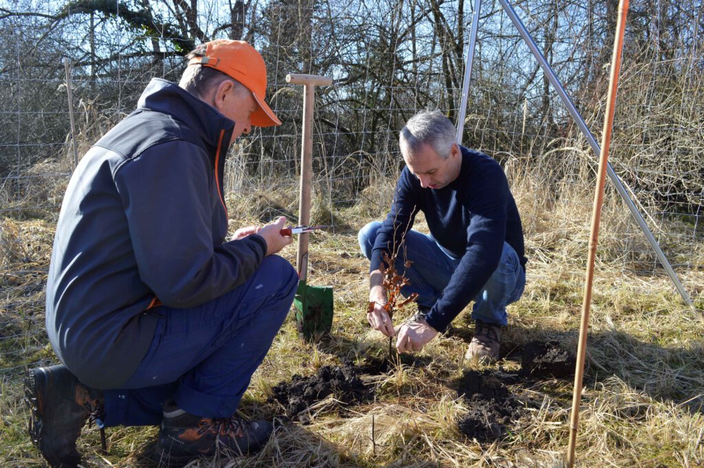 Die Verköstigung der vielen Helfer übernahmen das Klimanetz und an zwei Tage das Kaffeehaus, das kistenweise belegte Semmeln und Brote spendierte. Am 7. März war es dann geschafft: 550 Setzlinge befanden sich im Boden und dürfen in den nächsten Jahren zu stattlichen Bäumen heranwachsen.
